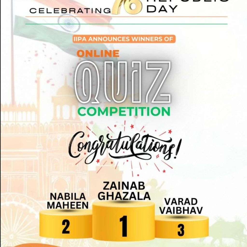 The International Indian Professionals Association (IIPA) celebrated the 76th Republic Day of India by organizing and engaging Online Quiz Competition for Indian students studying abroad in grades 7-12. A total of 100 students from various regions of KSA, showcasing their knowledge about India’s Constitution, history, and cultural heritage.