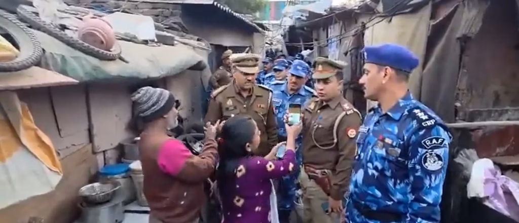 The video, recorded during a police exercise in the Kaushambi area, shows an officer placing what appears to be a